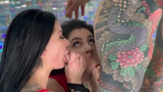 Priscilla e Valentina ingoiano insieme da tatuato