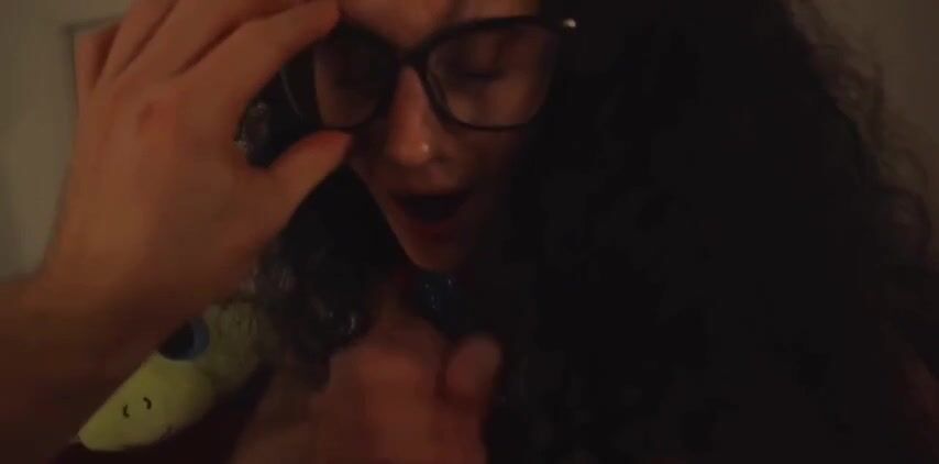 Fa un pompino al suo papi mentre guarda la tv e ingoia