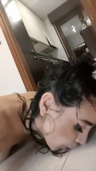 Milf italiana lecca la piscia sul pavimento