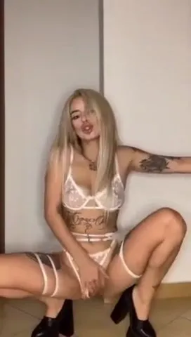 Ditalino e grosso cazzo in fica in lingerie biondina social